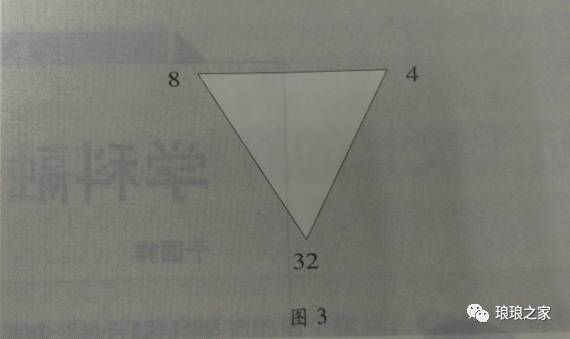 为了有意识地进行训练,教师可用“倒三角练习法”。就是画一个倒立的三角形(如图3),3个角上写上数,教师盖住任何一角,学生立即能反应出这个数,使相关的3个数,如“8、4、32”,形成牢固的联系。
