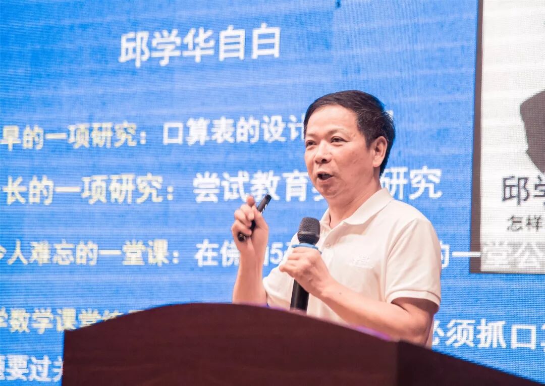 白克中:在邱学华教授的引导下,孩子们学习踊跃,思维积极,在课堂上充分展示自己,做了课堂的主人,邱教授一步步引导,并通过课堂检测,贯彻落实了尝试教育先学后教、当堂检测的理念。邱教授每一个教学阶段的提示语,充分尊重学生,平等对待学生,保持了邱教授平易近人的教风。邱老师以83岁高龄,带领着二年级的孩子们一起学习,感谢他以尝试教育理论创立者的身份给我们上的名师示范课。