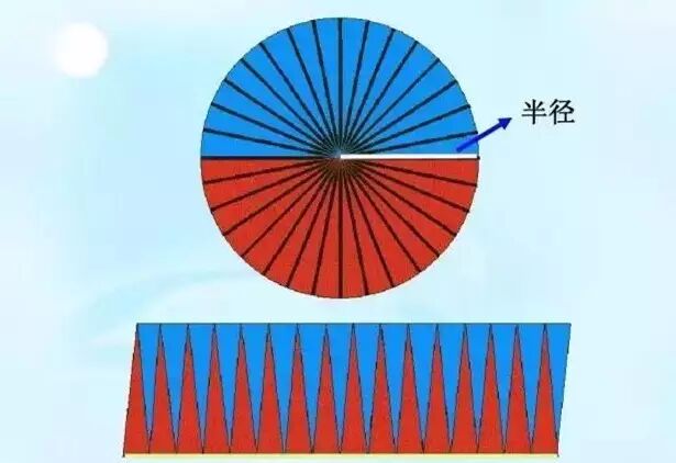 事物是从量变到质变的,极限方法的实质正是通过量变的无限过程达到质变。在讲“圆的面积和周长”时,“化圆为方”“化曲为直”的极限分割思路,在观察有限分割的基础上想象它们的极限状态,这样不仅使学生掌握公式还能从曲与直的矛盾转化中萌发了无限逼近的极限思想。